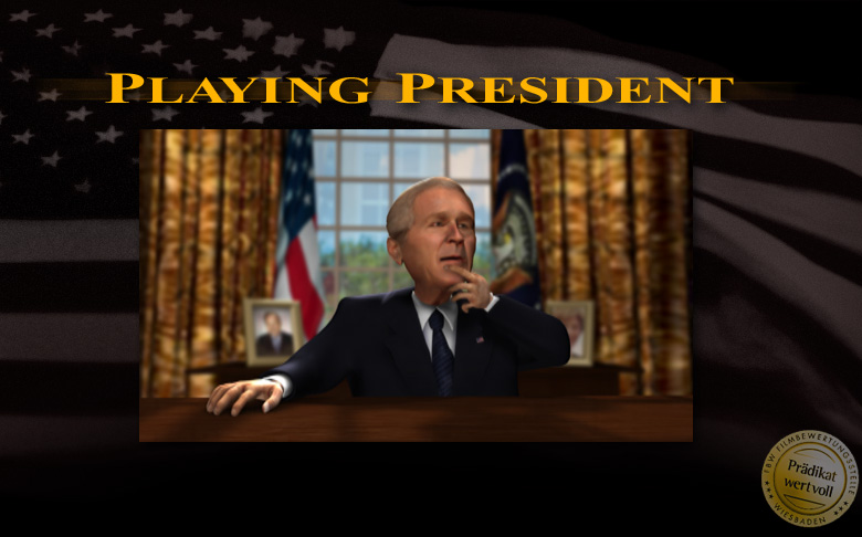 "Playing President" wurde 2007/08 als freie Arbeit produziert und übt Kritik an der Außenpolitik von US Präsident George W. Bush, der mit seinem nicht enden wollendem "War on Terror" die Welt zunehmend destabilisiert hat.